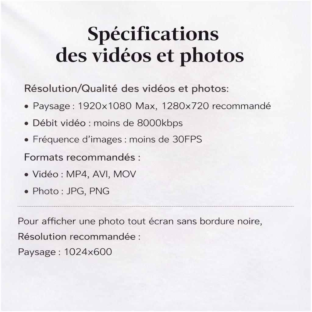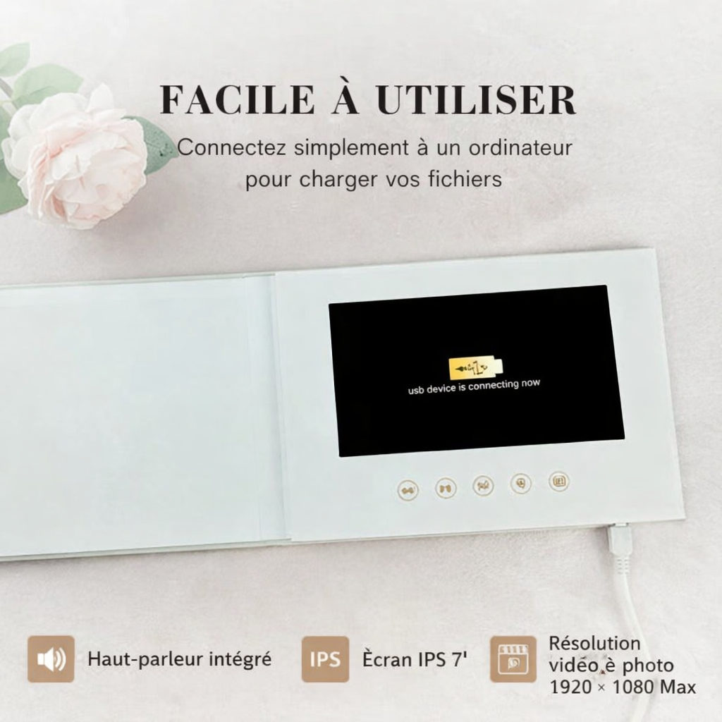 L’album intègre un écran permettant de lire vos vidéos directement à l’intérieur.
