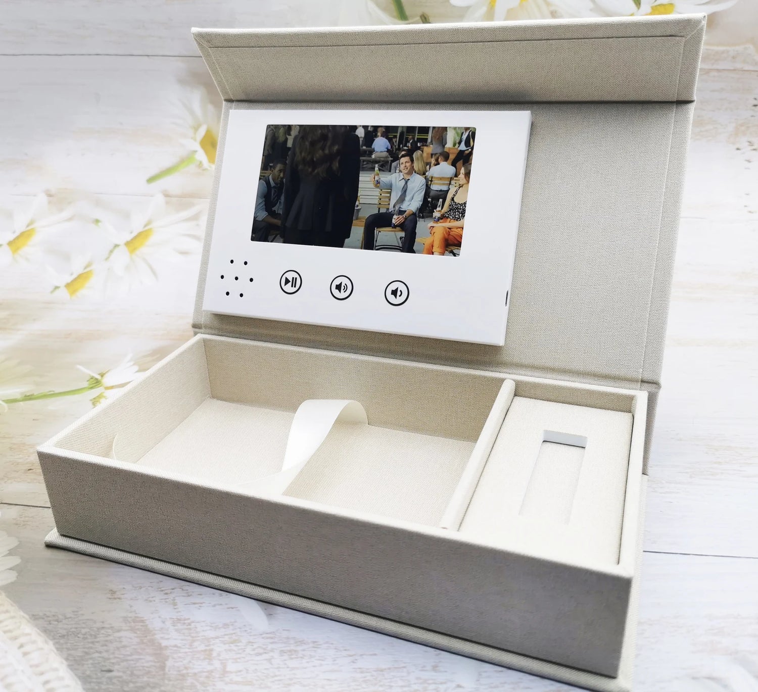 Cet album vidéo en lin transforme vos moments importants en une expérience unique, alliant design moderne et technologie discrète.